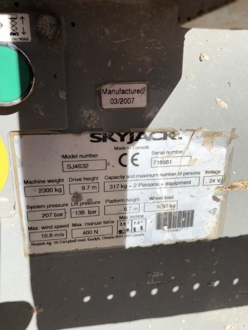 Model/Serial No: Skyjack SJ4632 - serial 718981