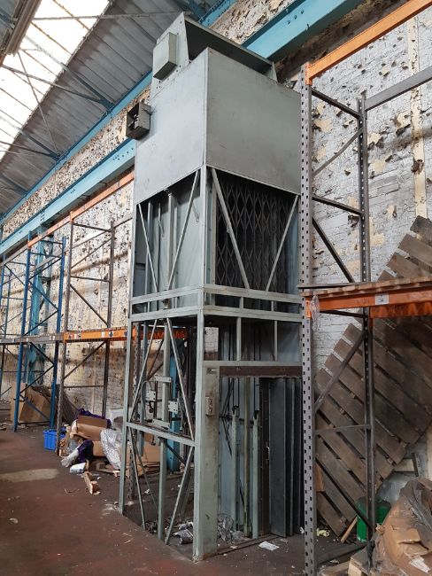 Service Elevator to Suit Mezzanine Floor will require removal and transport. Outer panels removed for photos and will come with the item - see photos.
