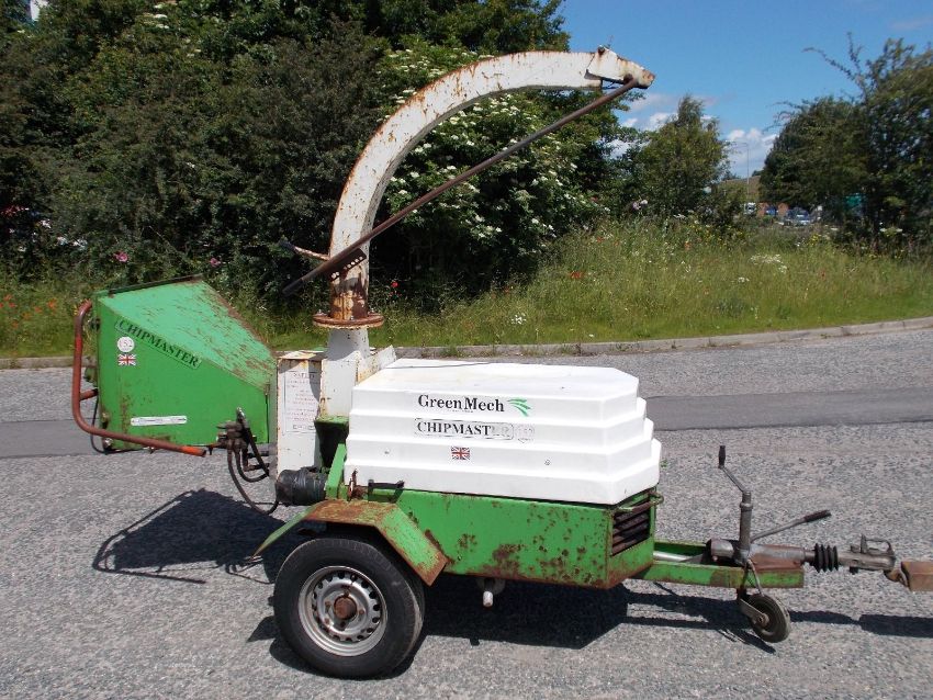Greenmech CM152 wood chipper Electric start diesel engine 6" capacity Weighs about 1000 kg Twin hydraulic roller feed