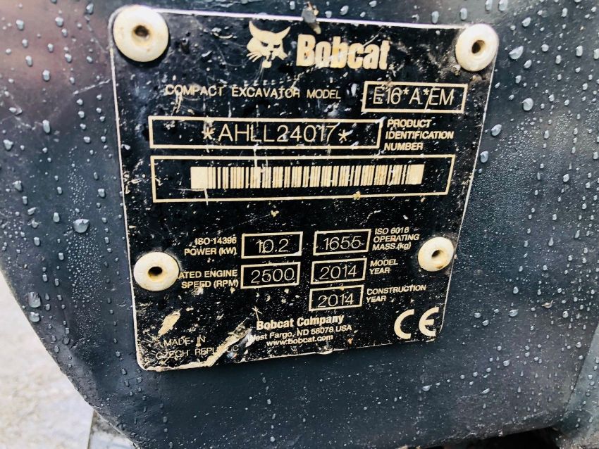 Bobcat E16 Excavator, Year 2014, 1992 Hours, Expanding Undercarriage, Key Code Start, Quick Hitch