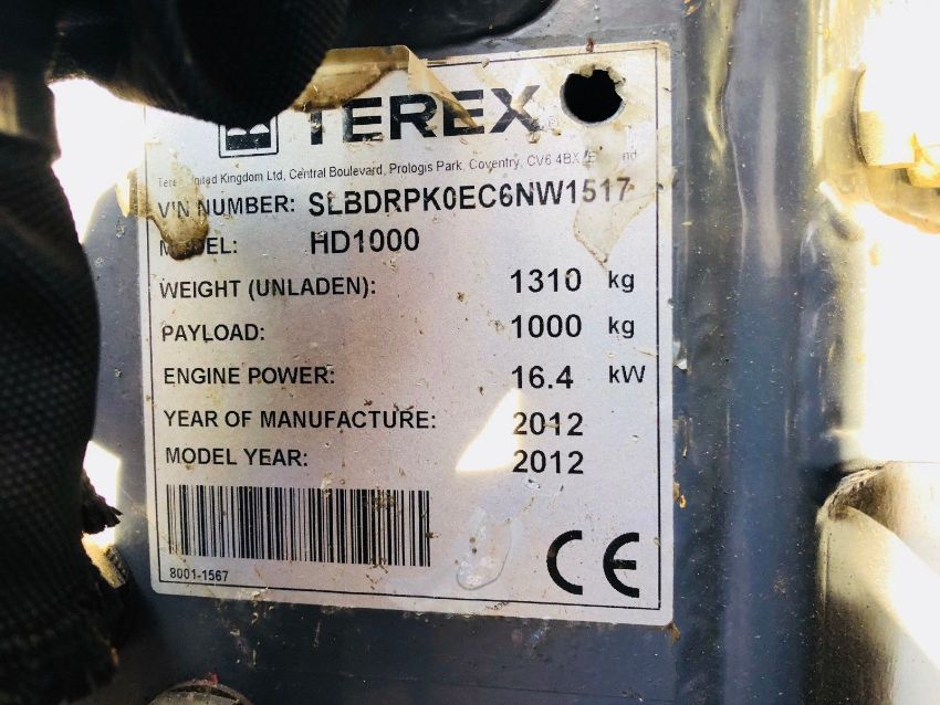 Terex HD1000 High Tip Dumper, Year 2012, 1907 Hours, CE Marked