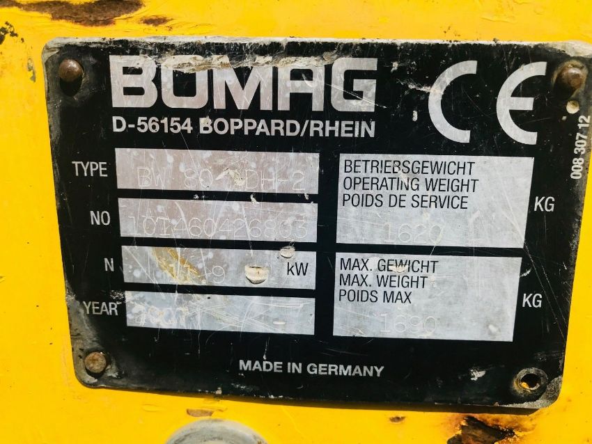 Bomag BW80 ADH-2 Twin Drum Roller, Year 2007, 1197 Hours, Fold Down ROPS