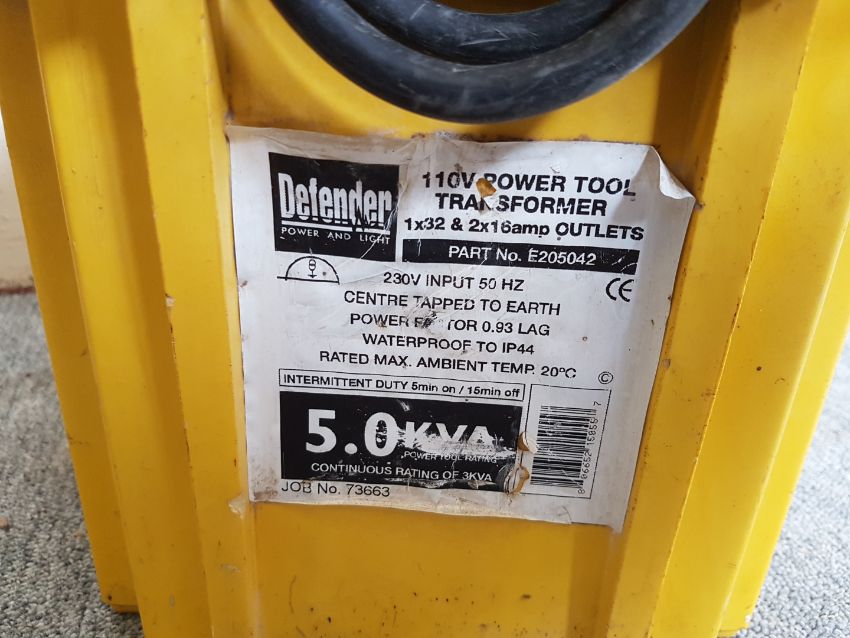 Defender 110v 5KVA 16 & 32Amp Transformer - Tested / In Working Order