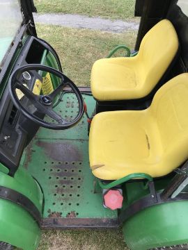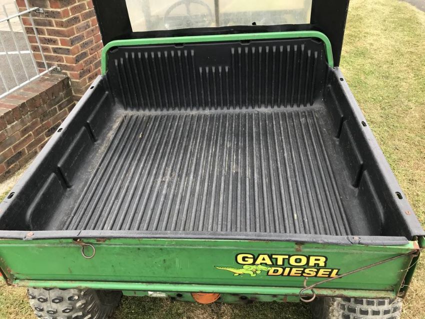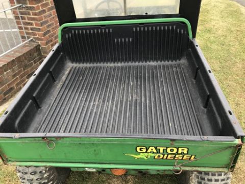 John Deere 6x4 Gator Utility Vehicle fitted with the following: 854cc (18.5hp) 3-Cylinder Water Cooled Diesel Engine, 4 Wheel Drive, 726kg Towing Capacity, 544kg Cargo Capacity, Electric Tipping Cargo Box, Plastic Bed Liner, Weather Cab.