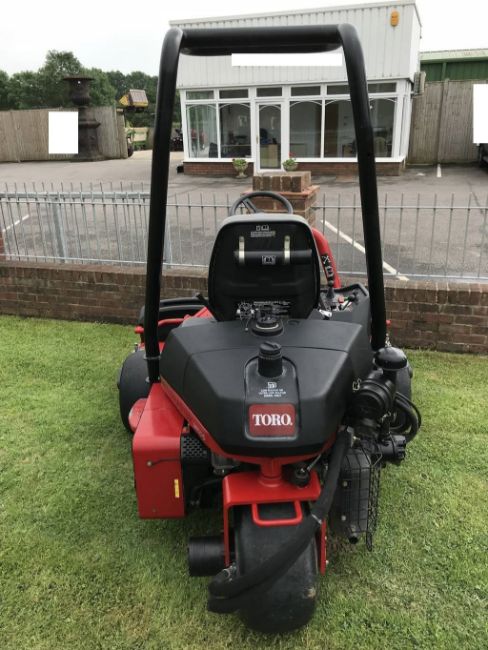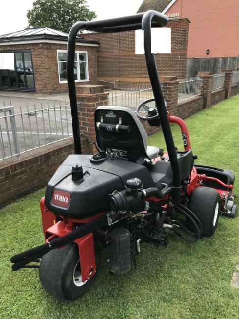 Toro Greensmaster 3250-D Ride-On Triple Greensmower fitted with the following: 21hp 3-Cylinder Water Cooled Diesel Engine, 3-Wheel Drive, 11 Blade DPA Cutting Units, Full Front Rollers, Rear Roller Powered Brushes, Groomers, 2011 Model.