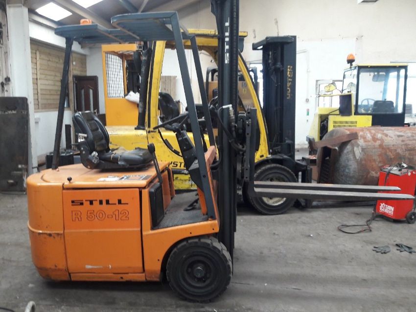Still R50 3 wheel Electric 1.2 Ton Forklift, Lowered Mast/Lift Height: 2300mm, Maximum Mast/Lift Height: 304.8 - 330.2 cm.