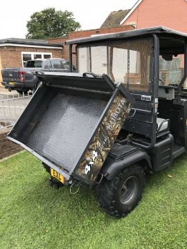 Kubota RTV1140 CPX Utility Vehicle Fitted with the Following: 25hp 3-Cylinder Water Cooled Diesel Engine, Hydrostatic Transmission, 3-Speed Ranges (H-M-L), Power Steering, Hydraulic Tipping Body, Convertible from 4/5 Seats to Larger Cargo Box, 2012 Model.