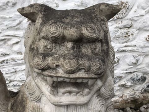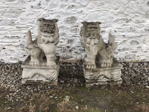 Pair Of Chinese Foo DogsSolid granite or marble1/2 tonne approxSizeHeight 52"Width 22"Length 30"