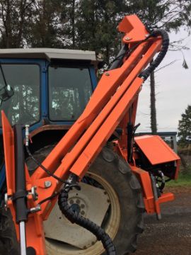Ryetec AV500 Hedgecutter, Electric joystick controlled, Multi-Position head gives unrivalled flexibility, this allows for cutting head to be level with the driver and it has the ability to cut down narrow lanes within the width of the tractor. Twin Pump Independent Hydraulics with oil cooler.Hydraulic variable reach second arm Heavy duty 1.3m head with 65hp head drive motor, Sliding oil tank for weight counterbalance, Year 2014.