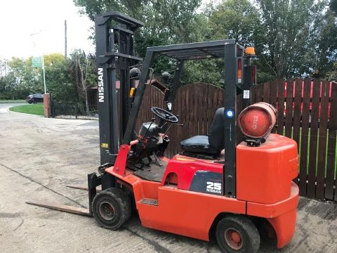 NISSAN 25 GAS FOLK LIFT, FORWARDS AND REVERSE SHUTTLE, LEAVER CONTROL, GAS