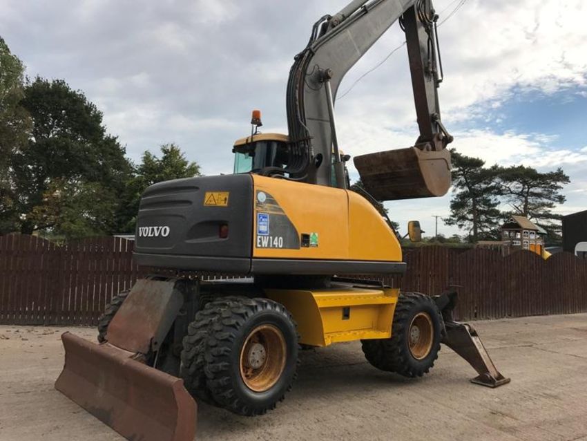 VOLVO EW140 WHEELED EXCAVATOR WITH BLADE AND LEGS, 2005 ROAD RAGESTERED, FORWARD AND REVERSE, SHUTTLE DRIVE, JOYSTICK CONTROLS, PIPED FOR BREAKER, BLADE AND STABILISER LEGS, 4X4, HYDROLIC QUICK HITCH, FULLY GLAZED CABIN