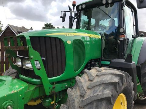 JOHN DEERE 6920S 4X4 TRACTOR 50K ON AIR, CLUTCHLESS FORWARD AND REVERSE SHUTTLE DRIVE, TELESCOPIC PICK UP HITCH, FRONT AXEL SUSPENTION, PTO, 3 POINT LINKAGE, FRONT WEIGHT BLOCK, TRAILER BREAKS AIR AND MECHANICAL , 3X SET OF SPOOL VALVES, PASSENGER SEAT, IMMOBILISER FITTED, CD PLAYER, CAB SUSPENSION, year 2005