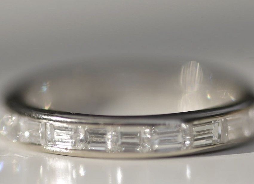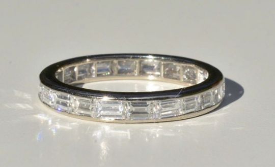 Measurements: 2.7mm wide Ring Size: UK I, US 4.25, EU 47 Diamonds: Full circle of diamonds approx 1 carat Weight: 1.7 grams