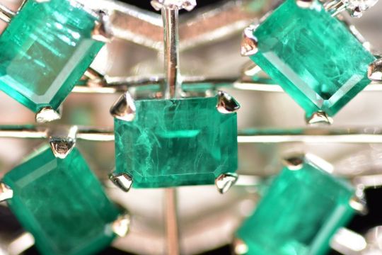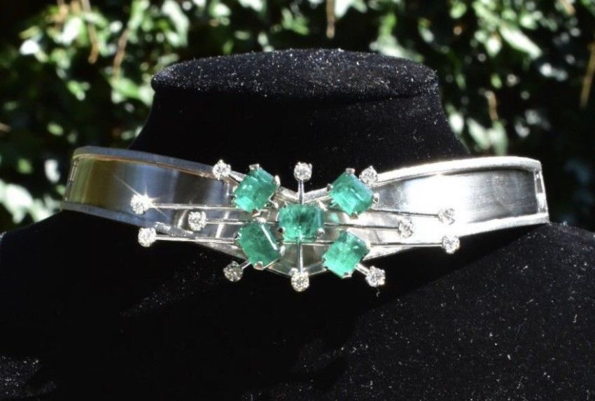 Hallmarks: 14k Weight: 50 grams Length: 11.8 inches Diamonds: 1.2 carat natural diamonds Emeralds: Approx 6.5 carats. The emerald a man made, not natural emeralds.