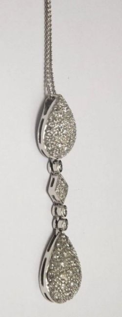 Antique 1.50ct Diamond 18k White Gold Pendant & Chain. 150 Diamonds in all, estimated total diamond weight of 1.50 carats. 12 mm wide / 45mm drop 1.75 inch. The pendant is handmade in solid 18ct white gold set with NATURAL Diamonds all securely Pavé claw set and completed by a 16 inch 9ct gold chain. Collection Only