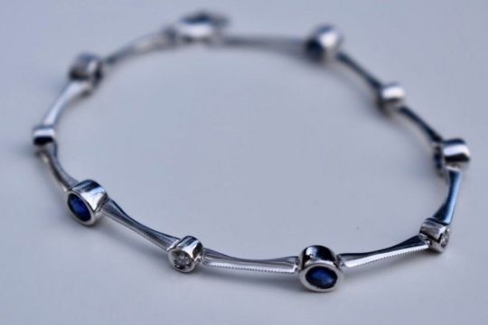 Hallmarks: S146 014 HP 750 Weight: 7.1 grams Lenght: 6 3/4 Sapphires: 1.46 carats Diamonds: 0.14 carats