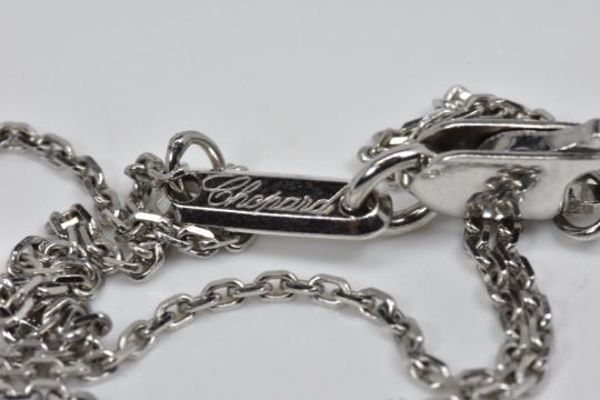 Lenght: 17.8 inches Hallmarks: Chopard 750 Weight: Pendant size: 1.7 x 1.7 CM