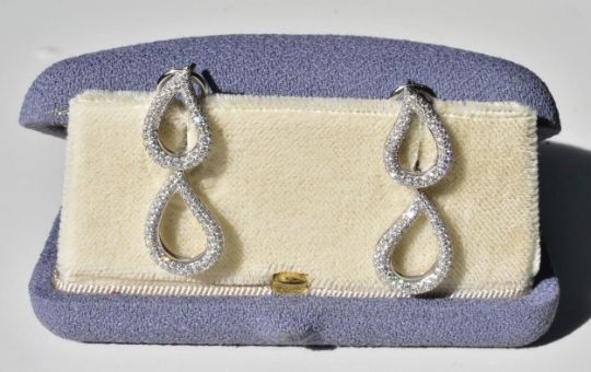 Diamond: 384 brilliant cut diamonds 1.49 carat total Diamond clarity and color: G-H / Si Dimensions: height 3.5 cm width 1.3 cm Hallmarks: Bucherer 750 CB Measurements: 3.5 cm Weight: 9.5 grams