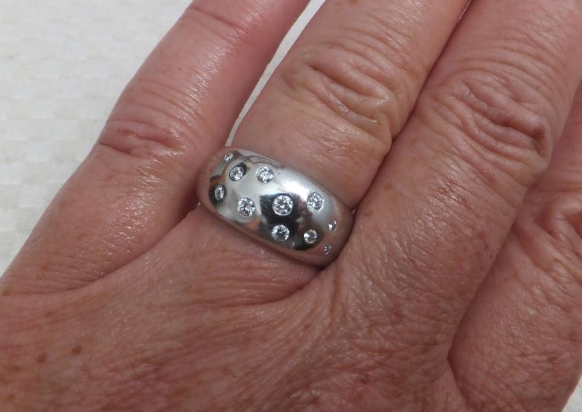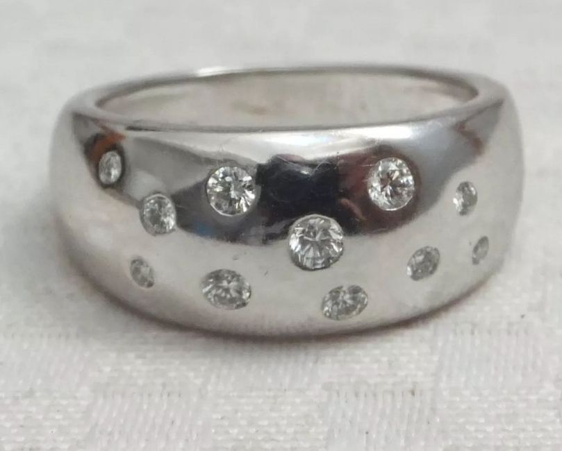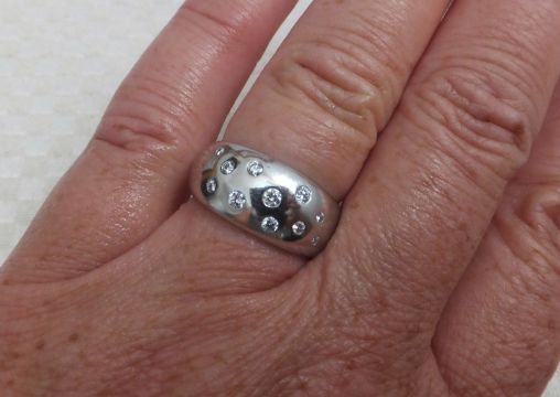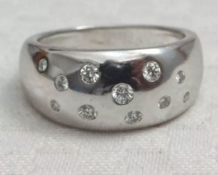 18ct Gold Designer Diamond RingMetal: White GoldRing Size: N 1/2 Main Gemstone: DiamondGold Quality: 18 Carat WEIGHT 7.7 Grams The ring is mounted with a fine selection of sparkling diamondseach one known as the King of Jewels and the Jewel of Kings , every single diamond is hand mounted. Collection Only