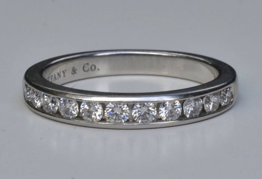 Estimated total diamond weight 0.50 carat. Hallmarks: Tiffany & Co, PT 950 Ring size: UK L, US 6 EU 51 1/2 Weight: 4.6 grams