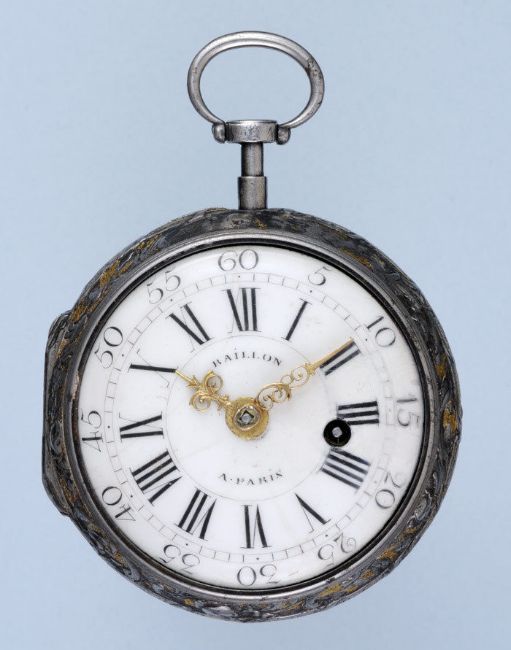 Rare Steel Cased French Verge Pocket Watch. A rare mid 18th Century French verge in a chased steel and gilt consular case. Circa 1760 Diameter 47 mm Depth 12 mm Signed Baillon a Paris