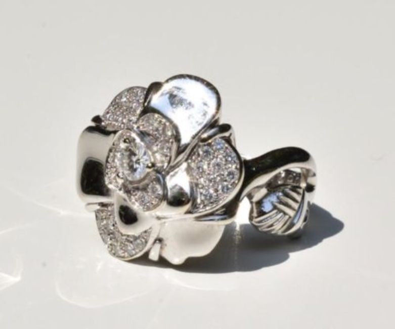 Size: UK K, EU 50 1/2 US 5.25 Diamonds: 33 diamonds of approx 0.40 carat Measurements: Top measures 17.5mm at widest point Hallmarked: Chanel 750 9L909 Weight: 10 grams