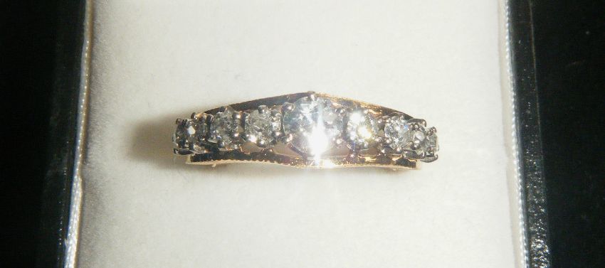 Antique Diamond 18ct Gold Platinum Ring Metal: Yellow GoldRing Size: J-1/2 Main Gemstone: DiamondGold Quality: 18 carat The Platinum and 18ct Gold compliment each other beautifully, The 18ct gold has a Slightly Rose gold hue, which has,matured over the last 80 years. Collection Only