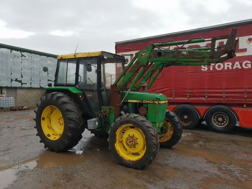 john deere 2140 tractor with loader, starts runs very smooth no smoke, clean oilgood brakes, strong hydraulics, 4wd shaft was removed a while ago for road work shaft lost now needs new battery but can be shown running and working for buyer, gear stick very sloppy but usable as is ideal for horse yard or just a cheap tractor ideal for restoration parts been used right up to date