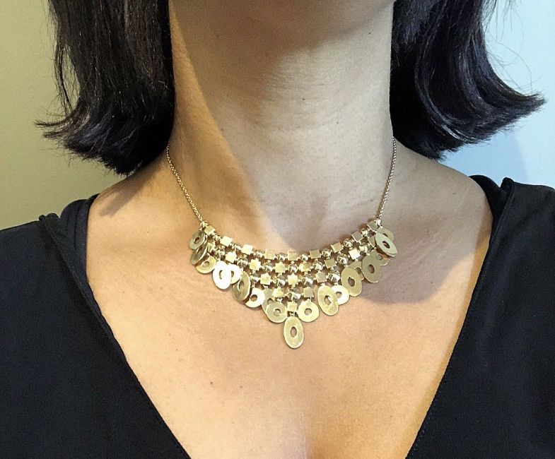 Bulgari Lucea Necklace 18k. A Bulgaria 'Lucea collection' necklace set in 18k yellow gold. The necklace features cube and stud pendant elements and oval-shaped and circular-shaped discs charms set to a fringe design. The pendant is set on an adjustable length cable chain set in yellow gold ( adjusts in increments from 15 to 17.5, 25) Hallmarks: Bvlgari 750 Made in Italy. Weight: 48.5 grams. Period: 2000s. Necklace length: 17.5 inches adjustable. The Drop part is 47mm at widest point. Condition: Excellent condition with very light sign of any wear.