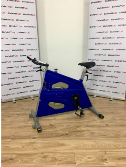 Studio Bike This Studio Bike is an amazing bit of kit, which has recently been purchased from a high class commercial gym, where it has been maintained in good condition and recently serviced. Although this product has a few cosmetic issues (as shown in the photograph) they are purely cosmetic and have no affect on the product stopping it from reaching it max potential. This studio bike is top of the line and feels as good as in looks. The light smooth steal frame covered in a light coating of zinc helping the steel frame repel sweat and water and also provides the seat and handlebars to stay firmly locked within the frame itself. The straps around the pedal allow your feet to have a secure grip whilst maintaining long lasting comfort.