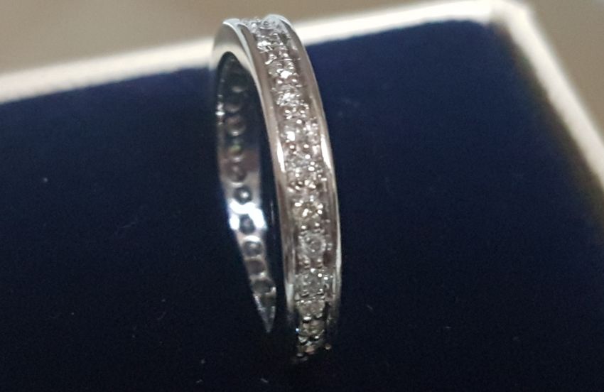 A Beautiful Full Eternity Platinum Diamond Ring, Well polished and designed as a Briiliant-cut Diamond line, a little sign of resizing. The Diamonds are of perfect matching colours and clarity grades 30 Brilliant Round cut diamonds DIAMOND DETAILS: Gemstone/Origin: Natural Diamond Stone weight: 1.20tcw Colour: E - F Clarity: VS Shape: Round Cut: Ex RING DESCRIPTION: Ring type: Full Eternity Metal: Platinum Weight: 5.0grams Polished: Excellent Ring Size: 15.7mm (diameter) Jewellery Box: Yes Fineness testing: Yes [platinum 925]