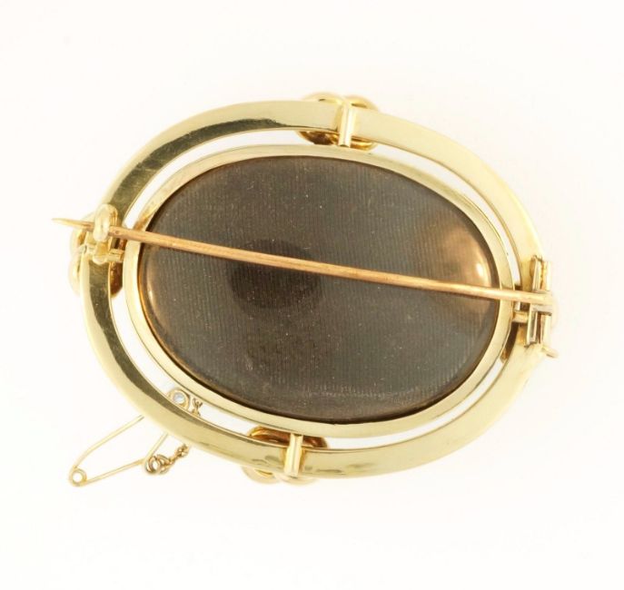15 Carat Yellow Gold Black Enamel Old Cut 1.00ct Diamond Mourning Brooch 45x55mmMetal Type: 15carat Yellow GoldHallmarking: Not hallmarked tested as '15ct'Total Weight: 40.98 grams