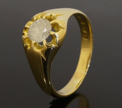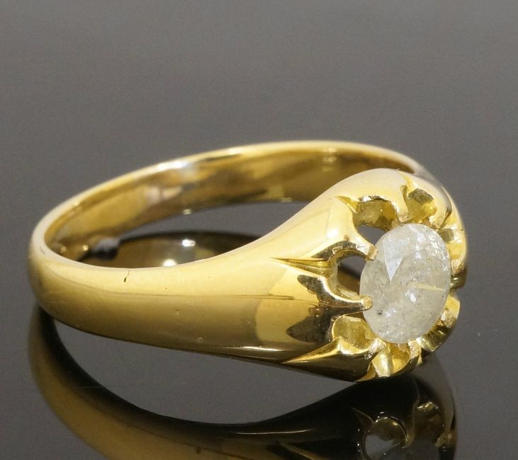 Antique 18ct Gold Diamond (0.70ct) Gypsy Solitaire Signet Ring (Size R 1/2) Metal Type: 18carat Yellow Gold Hallmarking: Fully Hallmarked '18' & Assayed Total Weight: 6.06 grams Gemstone Attributes: Rose Cut Diamond (0.70CT) With Certification: Yes Ring Size: R 1/2