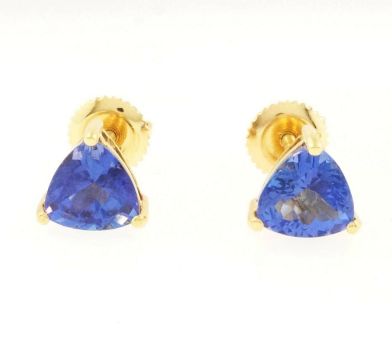 18 Carat Yellow Gold Tanzanite(2.00ct) Trillion Cut Stud Earrings-Screw Backs Metal Type: 18Carat Yellow Gold Hallmarking: Fully Hallmarked '750' & Assayed Gemstone Attributes: Tanzanite 2x1.00ct (2.00TCW) Total Weight: 2.06 grams