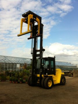 Hyster H9.00XL Forklift, Fitted with a block grab attachment that can be converted to forks, Year 1999, 9 Ton Lift.