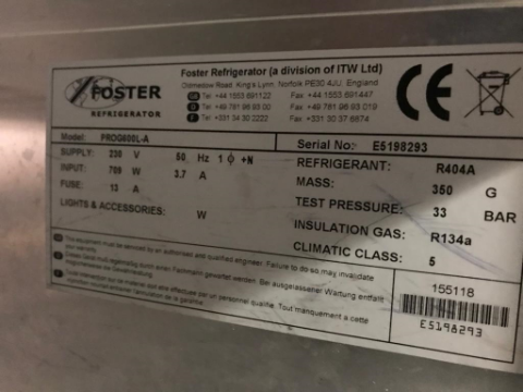 Foster professional refrigerator on caster wheels, Model:PROG600L-A Serial: E5198293