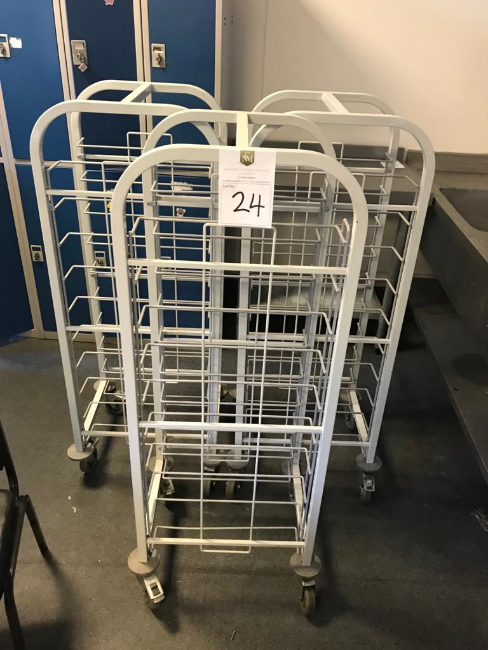 3x Craven Tray holders on caster wheels (10 shelves)