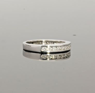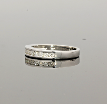 18ct White Gold Diamond Eternity Ring .25cts Era/Dated: Modern Condition: Excellent New Superb Quality Presentation Box Diamonds: Dimensions Nine Stones 1.75mm diameter each Carat Weight .25cts Finger Size L 1/2 (UK) 5 3/4 (USA) 52 1/4 (EURO) This ring can be adjusted 3 UK sizes up or down free of charge. Please enquire for cost of alteration outside this size range Weight 3.4 grams Hallmarked:18ct Gold London Makers: MJ Stamped Dia 0.25
