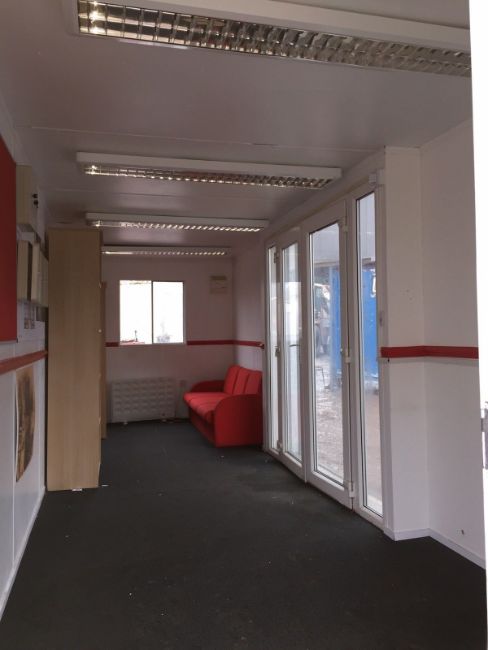 Anti Vandal Office Cabin Car Sales Site Welfare Unit Portable Building 24ft 1 x Anti Vandal Office, 24ft x 8ft, Wind and water tight, Fitted with lights, plug sockets, heaters.