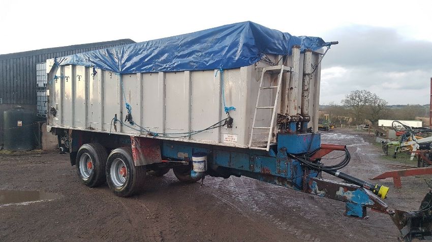 18 ton tipping trailer blower trailer grain wood chip tractor, aluminium body which is very clean and straight. Comes with blower system fitted comes with some pipes which sit under the body in the chassie 4 inch!!! Not tryed or test the system blower comes as a bonus its all there and can't see why it wouldn't work. Trailer tips fine lights all working fine air brakes working too. Steel suspension trailer rides well and tows a treat good big handy trailer which will never rot away! very well built. Good super singles fitted.