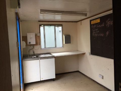 Office Canteen Site Cabin Anti Vandal Steel Portable Building 20ft, 1 x Anti Vandal Steel Office Canteen, 20ft x 8ft, Fitted with lights, plug sockets, heater, sink, hot water boiler, Anti vandal windows and door with keys.