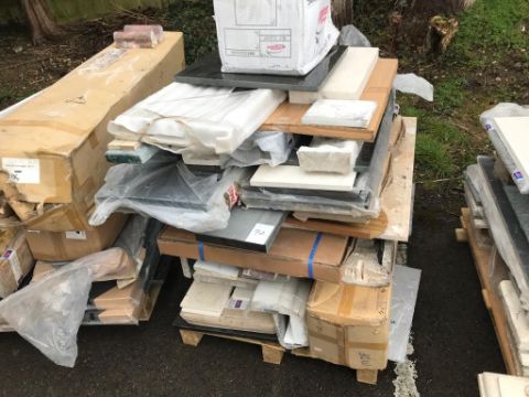 A mixed pallet of granite pieces comprising: hearth stones, fire insert panels, off cuts, as lotted