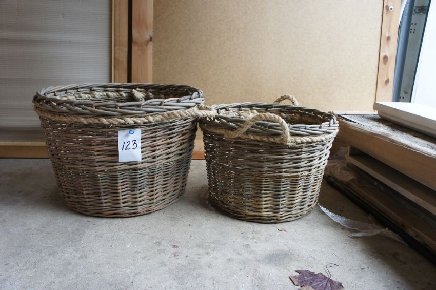 A pair of wicker log baskets, 1 x large, 1 x small