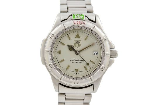 Tag Heuer 4000 Series Quartz Mens Midsize Watch, Year – 1990s, Dimensions – 34mm X 40mm, The timekeeping is perfect as you would expect from Tag Heuer, its powered by a quartz ETA movement. , The crown can screw in/lock and features the logo, case back also has the logo and screws in, It features the original strap in stainless steel with double lock clasp, s/n 513 and measures approximately 7'' or 17.5cm.