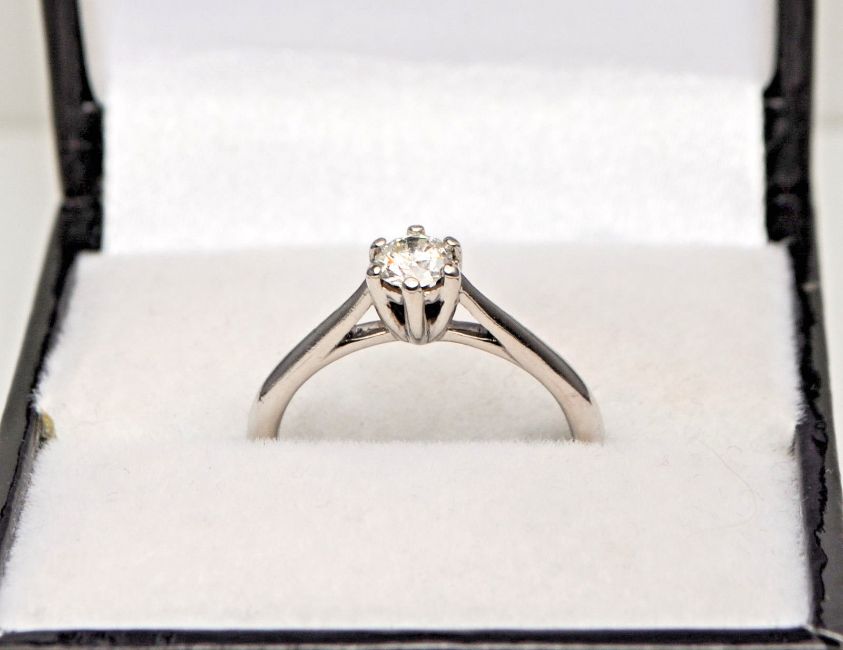 Platinum Diamond Solitaire Claw Set Engagement Ring 0.25ct Size J 1/2, Measurements- Size J 1/2 (leading edge), Weight- 4 grams, 0.25ct (diamond weight), Hallmarks- '950' (Platinum), Condition- Very good, some light dents & scratches on shank