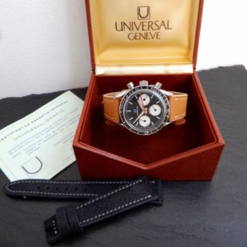 Universal Geneve Compax Watch, This dial is all original with only mild natural age patina that has pleasingly done nothing to affect the overall legibility and crispness of the dial. Some marks to the bezel but again pleasingly Original 2x NEW straps from Atilla Azodi Original BOX and quite astonishingly original Papers. Year of Manufacture: 1960-1969