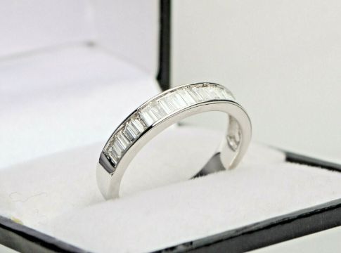 18ct White Gold Diamond Baguette Cut Half Eternity Ring / Band 0.50ct Size O 4mm, Measurements- Size O (ring size), 4mm (band width, at front), Weight- 3.3 grams, 0.50ct (diamond weight), Hallmarks- '18K' (18ct gold) , Condition- Excellent condition, like new