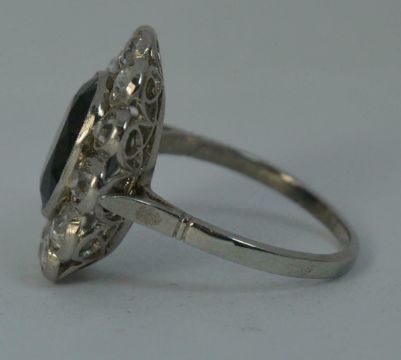 Antique French Old Cut Diamond & Sapphire Cluster Ring, Set with a large oval cut natural dark sapphire to the centre, 9.7mm x 12.5mm, Weight; 7.0 grams, Ring Size; R UK, 8 3/4 US.