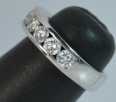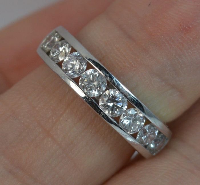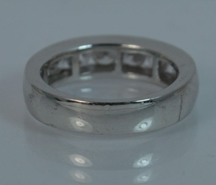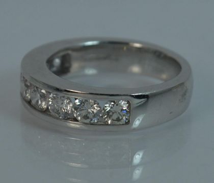 Platinum Diamond Ring, Half eternity design set with 8 round brilliant cut diamonds. 4.7mm wide band. 20mm spread of stones, Weight; 7.3 grams, Ring Size; H 1/2 UK, 4 US