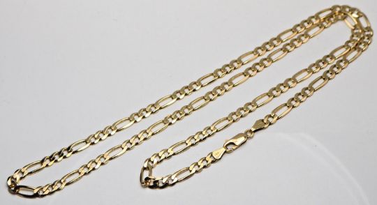 9ct Yellow Gold Figaro Link Chain / Necklace 4mm 23", Measurements- 23 inches (chain length), 4mm (link width), Weight- 15.8 grams, Hallmarks- '375' (9ct gold, Condition- Very good